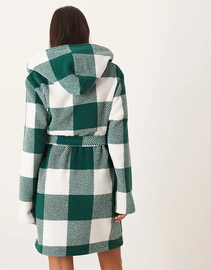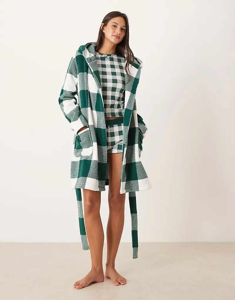 Мини-халат из микрофлиса ASOS DESIGN с принтом в клетку «гингем»
