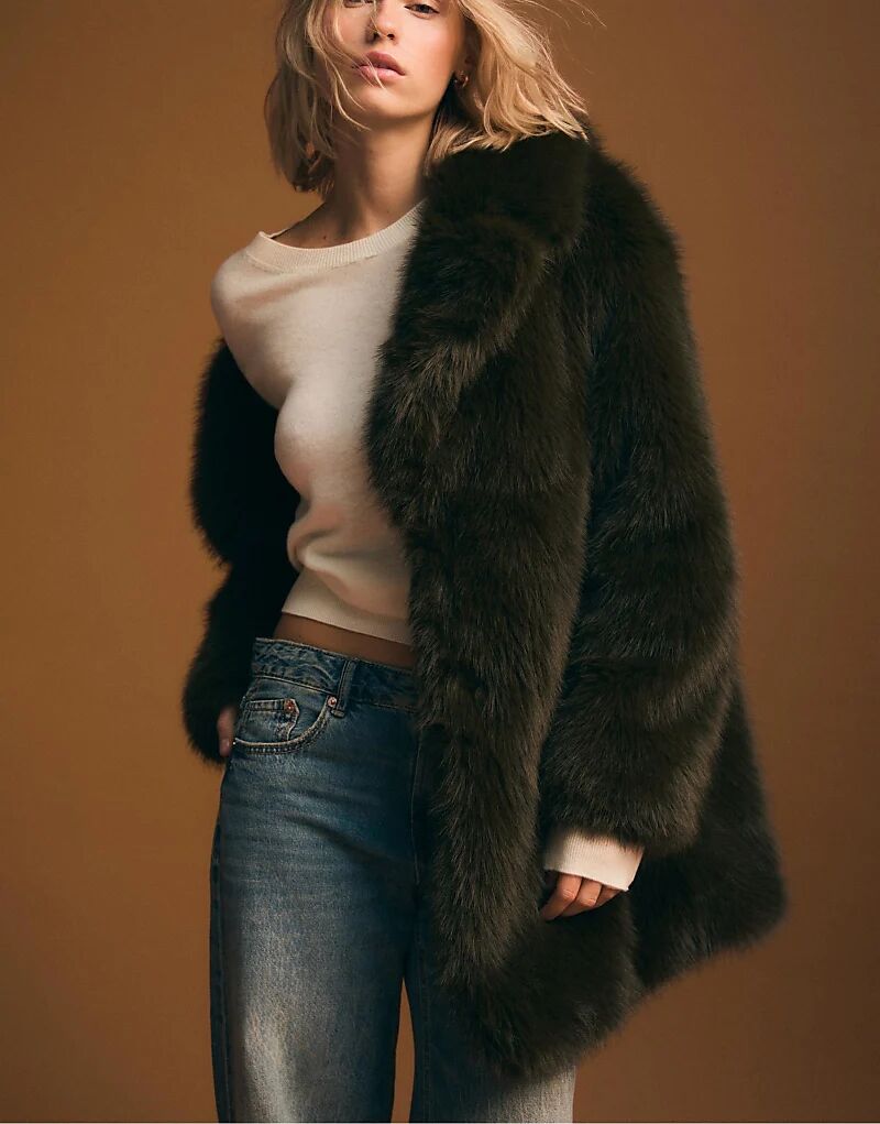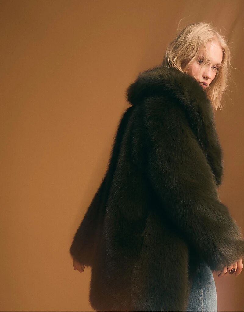 Искусственная шуба Stradivarius Regular Fit зеленого цвета