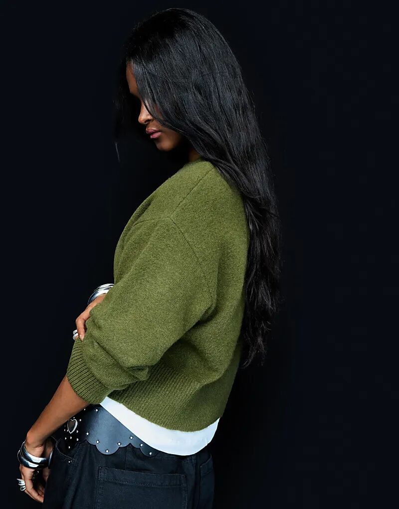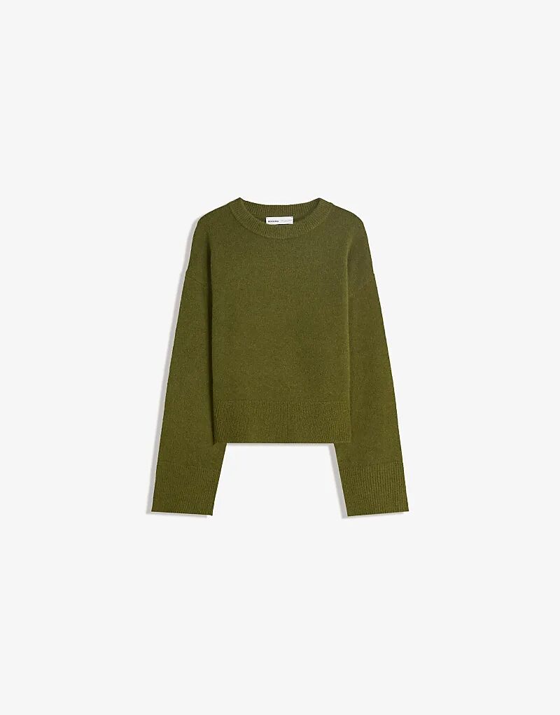 Свитер Bershka Oversize с ребристым подолом зеленого цвета