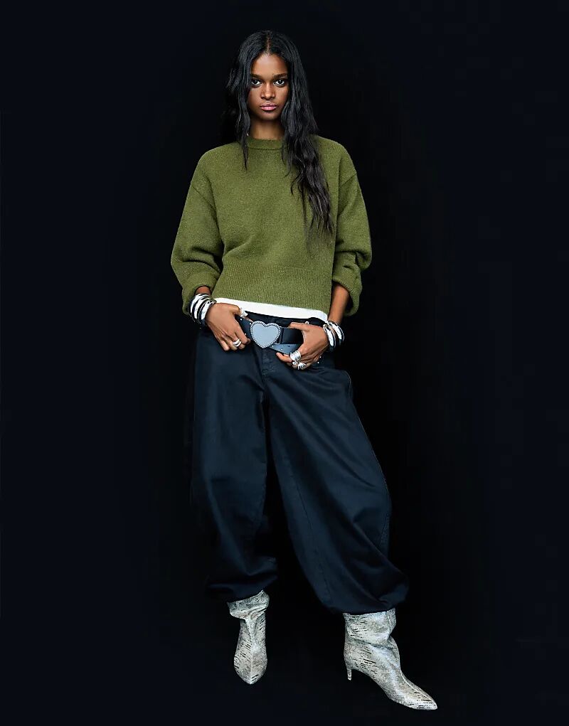 Свитер Bershka Oversize с ребристым подолом зеленого цвета 6 038₽