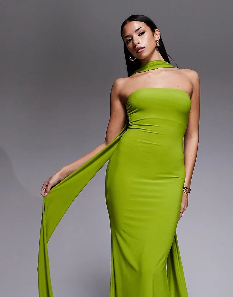 Платье макси из сетки ASOS DESIGN зеленого цвета с шарфом
