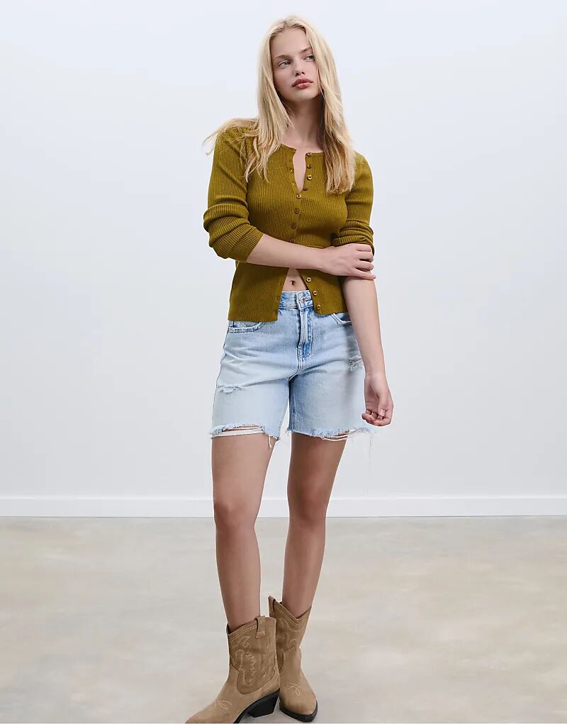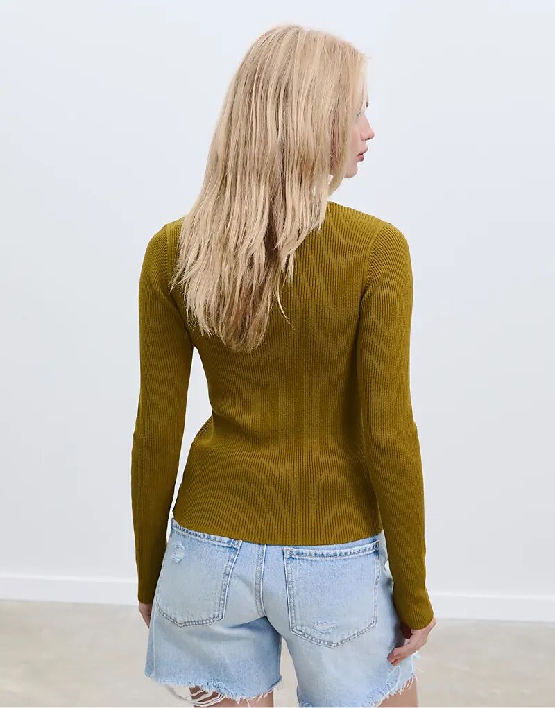 Кардиган Stradivarius в рубчик с пуговицами зеленого цвета