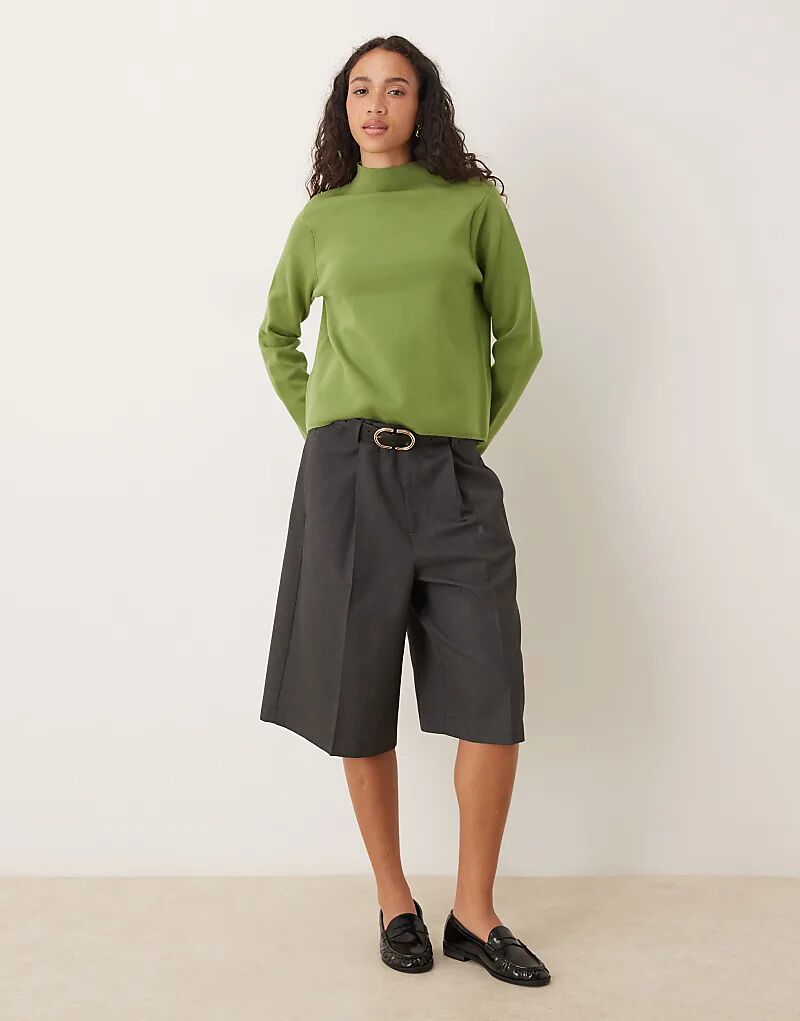 Джемпер с воротником-стойкой Mango зеленого цвета