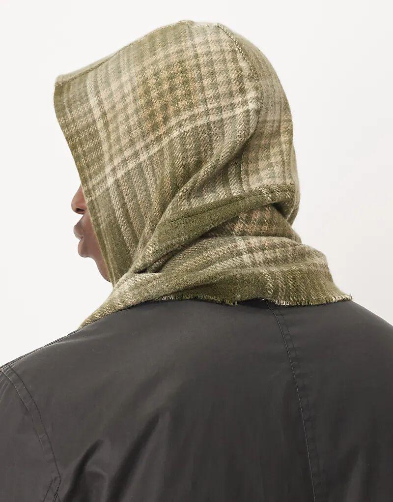 Клетчатый шарф с капюшоном ASOS DESIGN зеленого цвета
