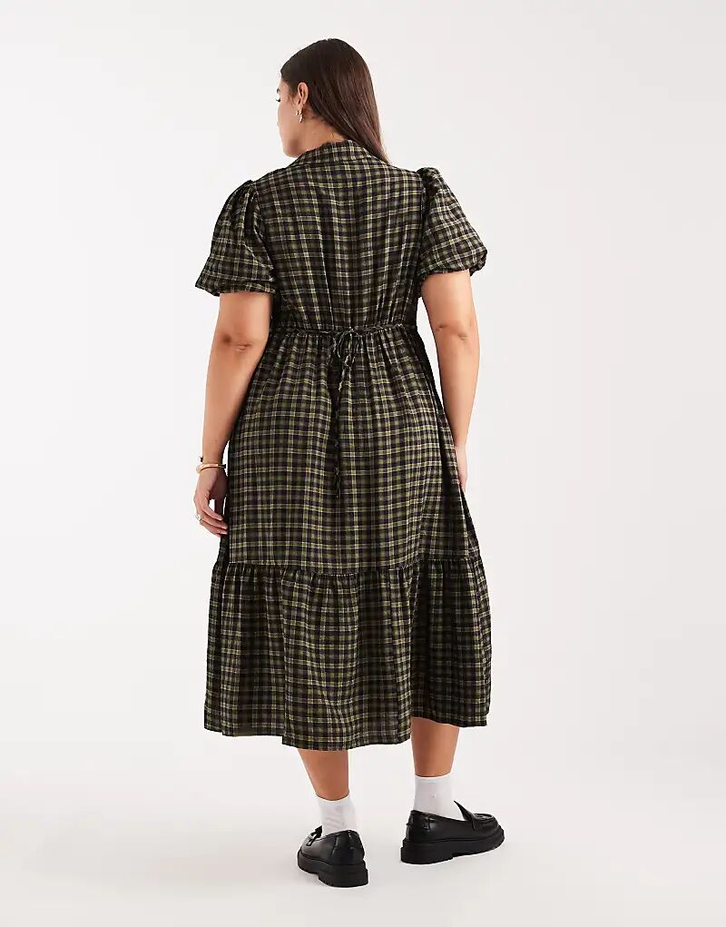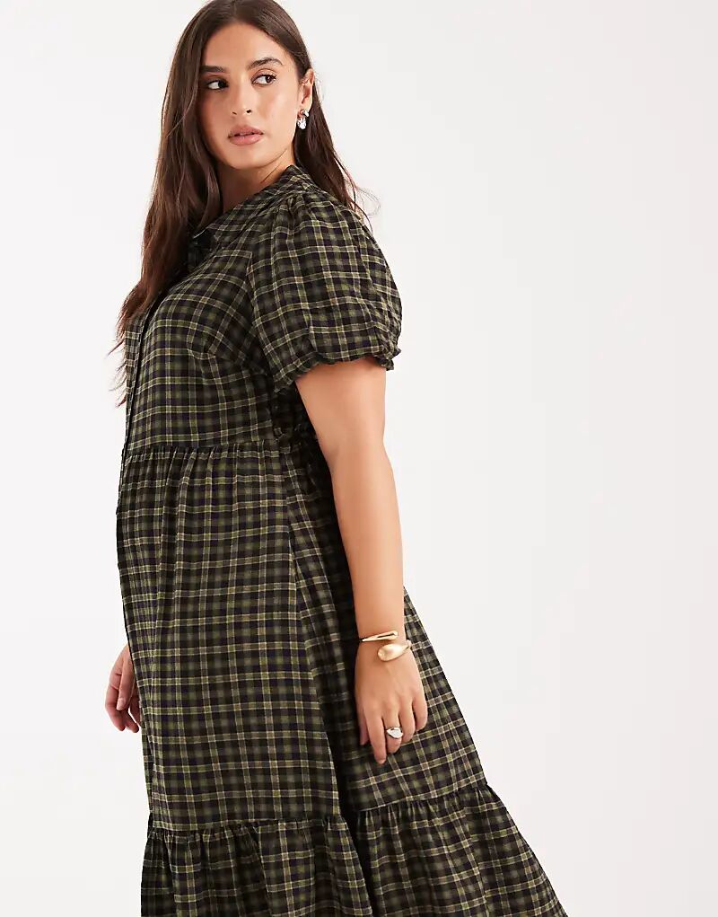 Платье-рубашка миди New Look Curve в клетку зеленого цвета