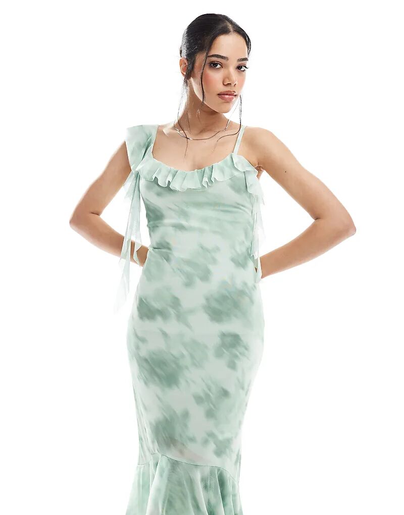 Асимметричное платье миди New Look с зеленым цветочным принтом