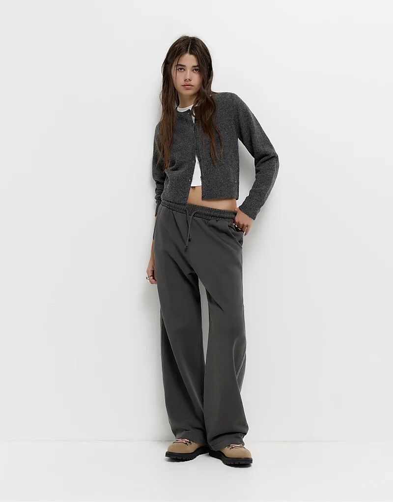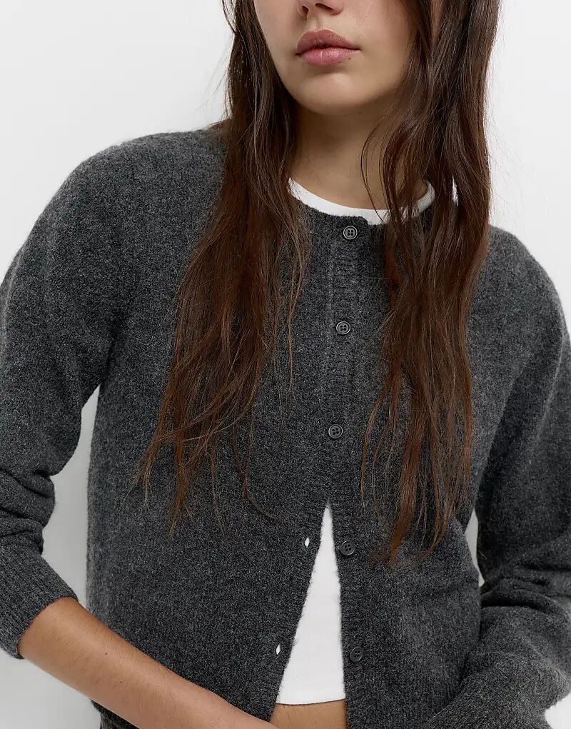 Вязаный кардиган на пуговицах Pull&Bear серого цвета