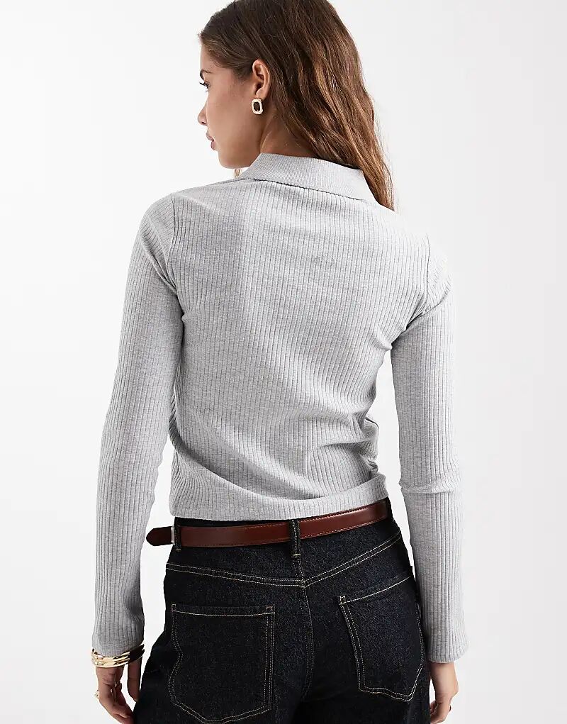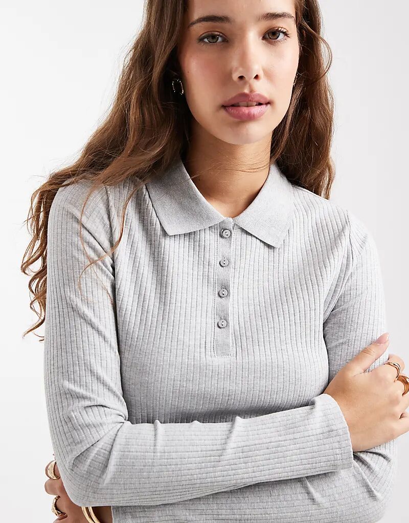 Длинный топ-поло Mango Teen серого цвета 4 266₽