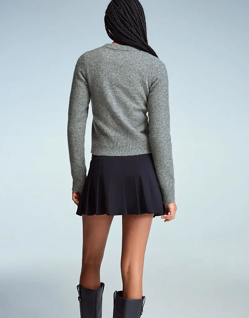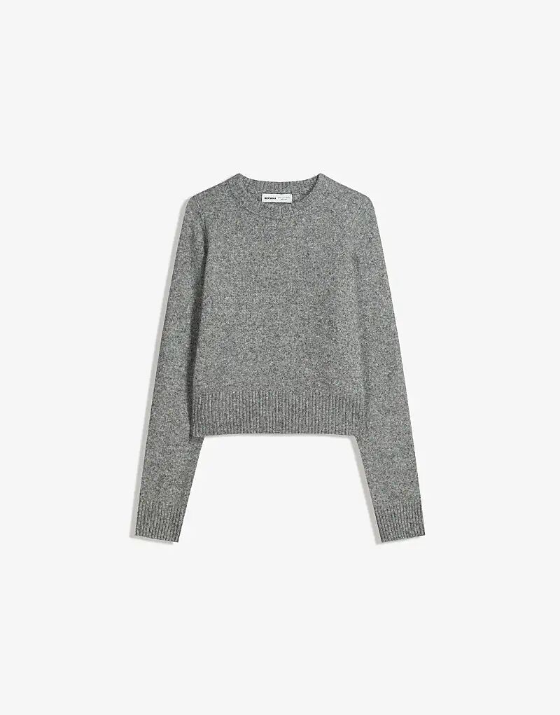 Свитер Bershka с круглым вырезом серого цвета