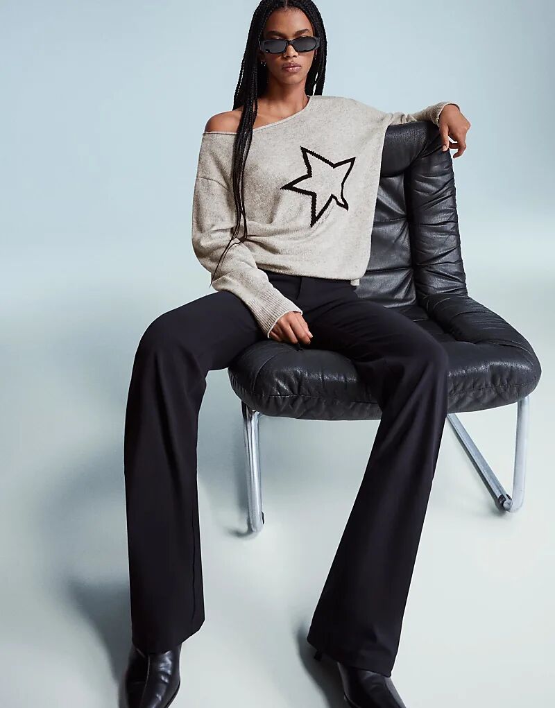 Свитер Bershka с принтом «лодочка» серого цвета 4 480₽