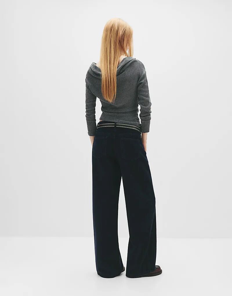 Креповый топ Pull&Bear с вырезом-лодочкой серого цвета 3 163₽