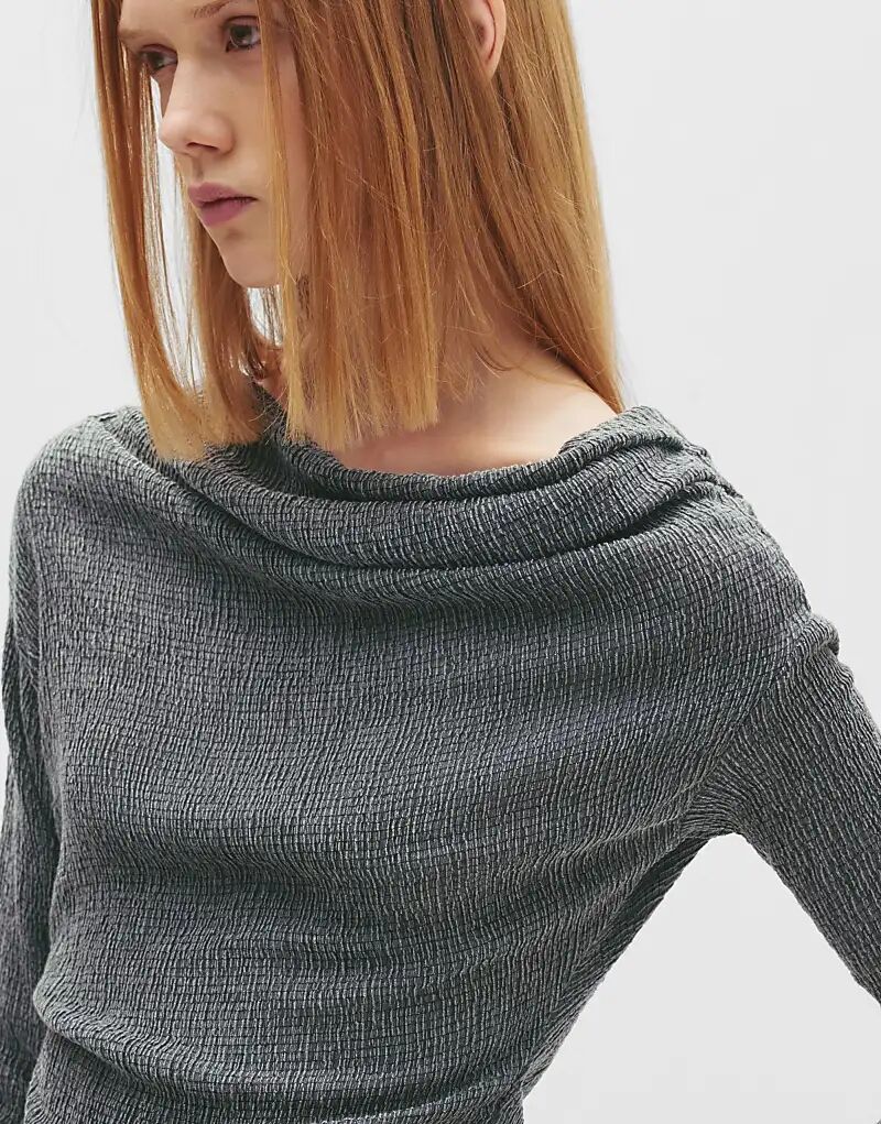 Креповый топ Pull&Bear с вырезом-лодочкой серого цвета