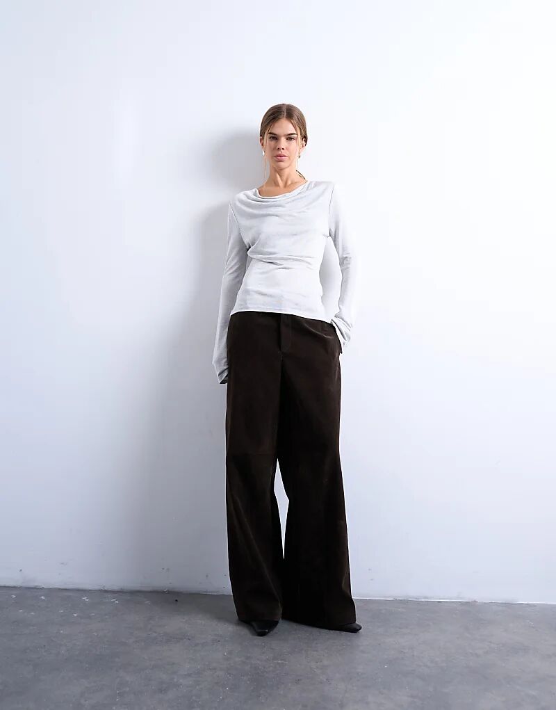 Лонгслив Topshop с драпировкой и длинными рукавами, серый