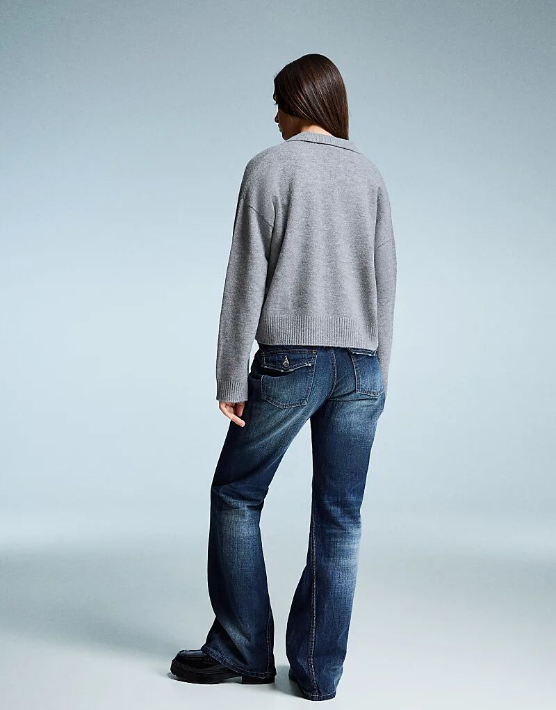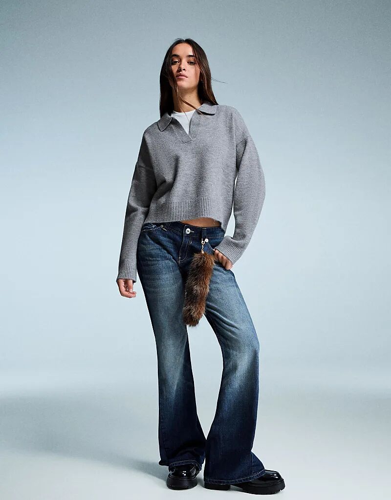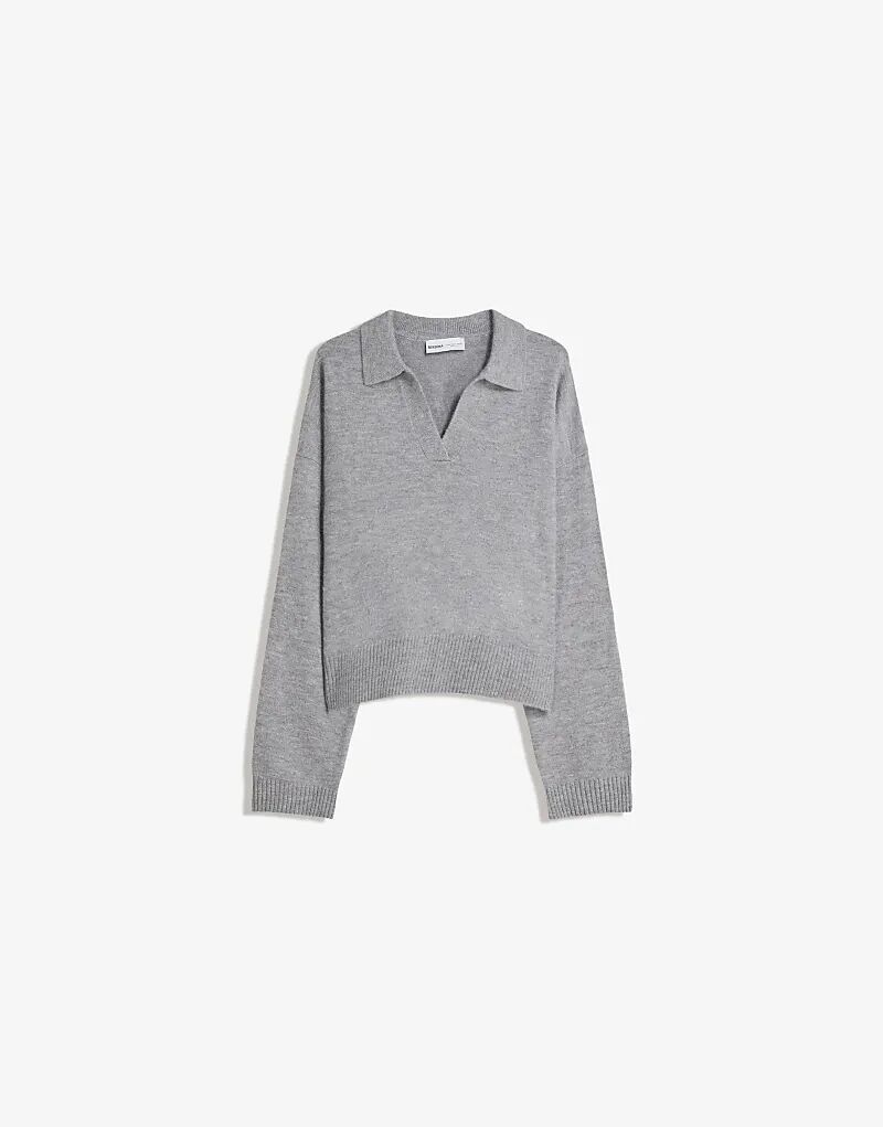 Свитер Bershka Polo с воротником серого цвета