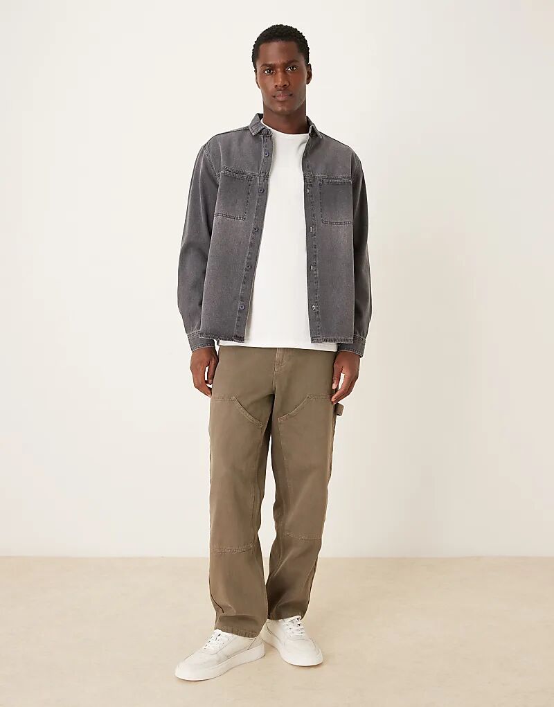 Рубашка ASOS DESIGN с длинными рукавами и карманами из серого денима