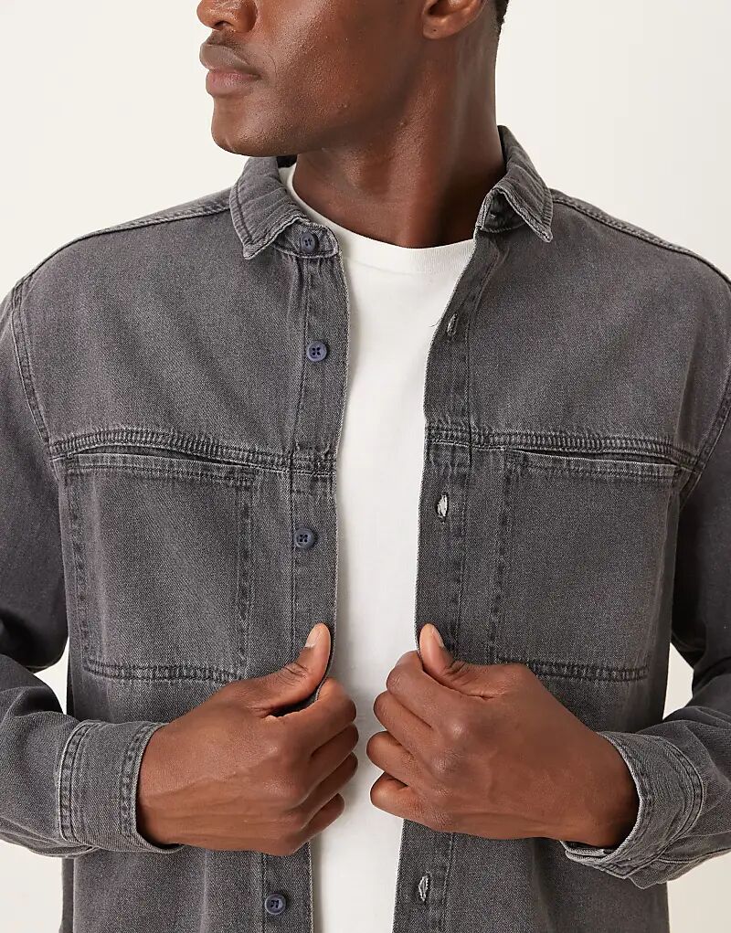 Рубашка ASOS DESIGN с длинными рукавами и карманами из серого денима 5 384₽