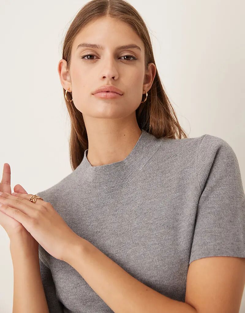Мини-платье Mango с короткими рукавами и расклешенным лифом серого цвета