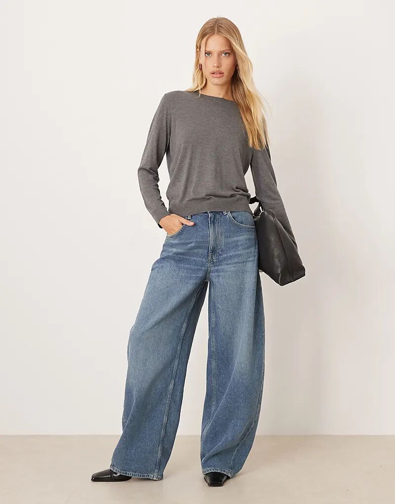 Легкий джемпер Mango с круглым вырезом серого цвета