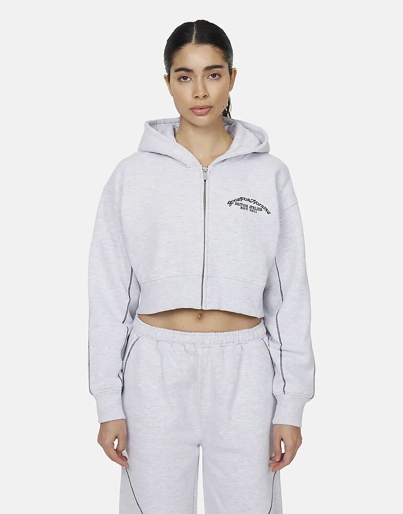 Good For Nothing Укороченная толстовка с капюшоном на молнии серого цвета