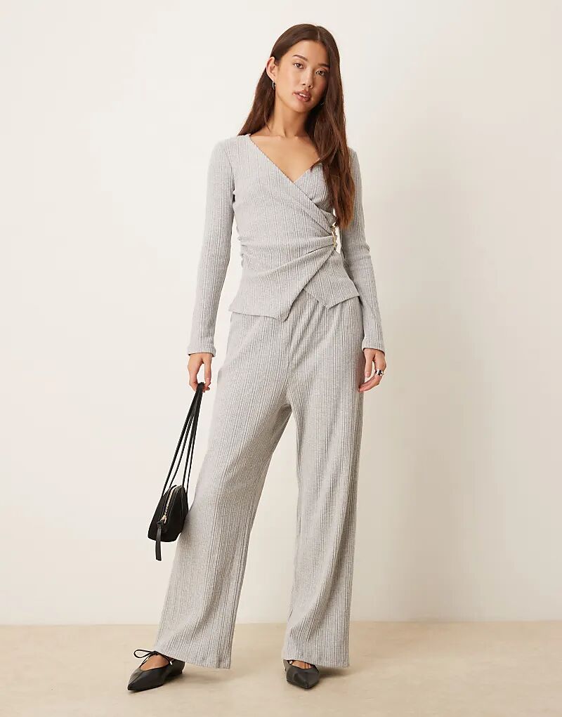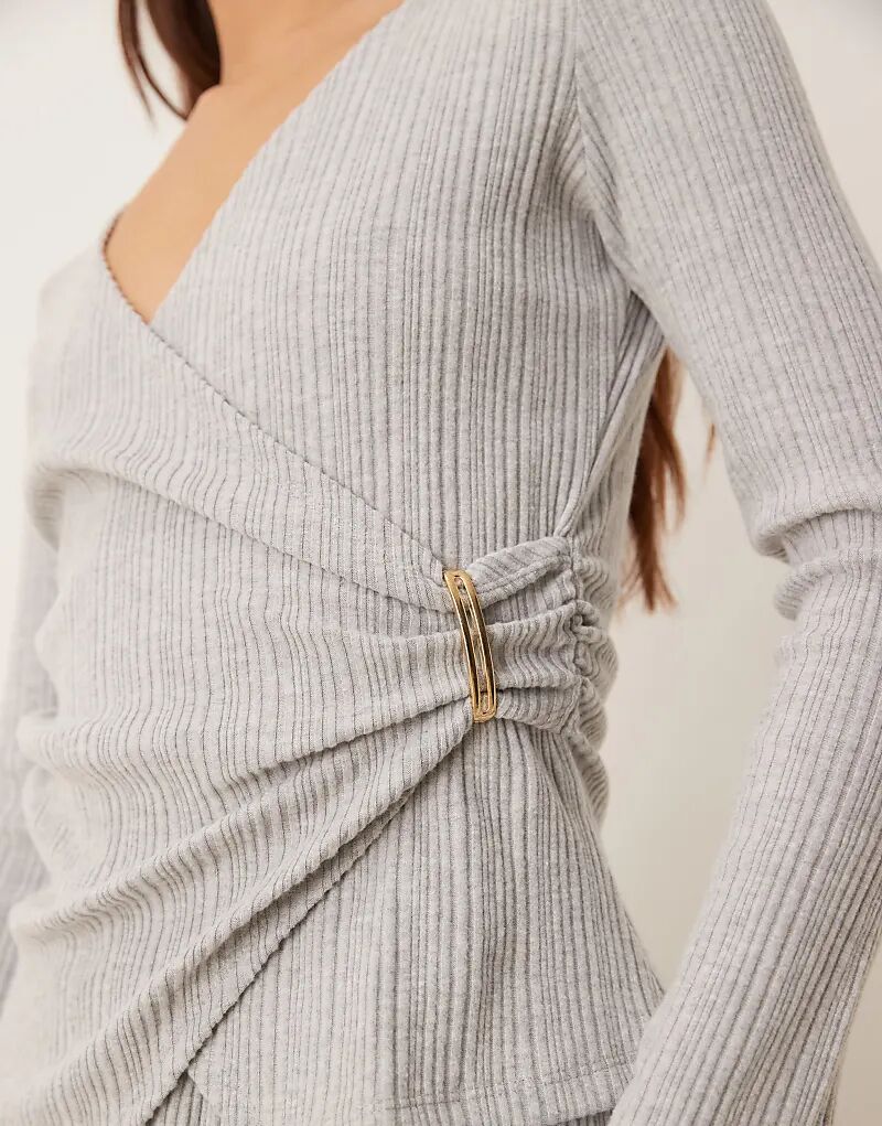 Супермягкий топ-обертка ASOS DESIGN в рубчик серого цвета