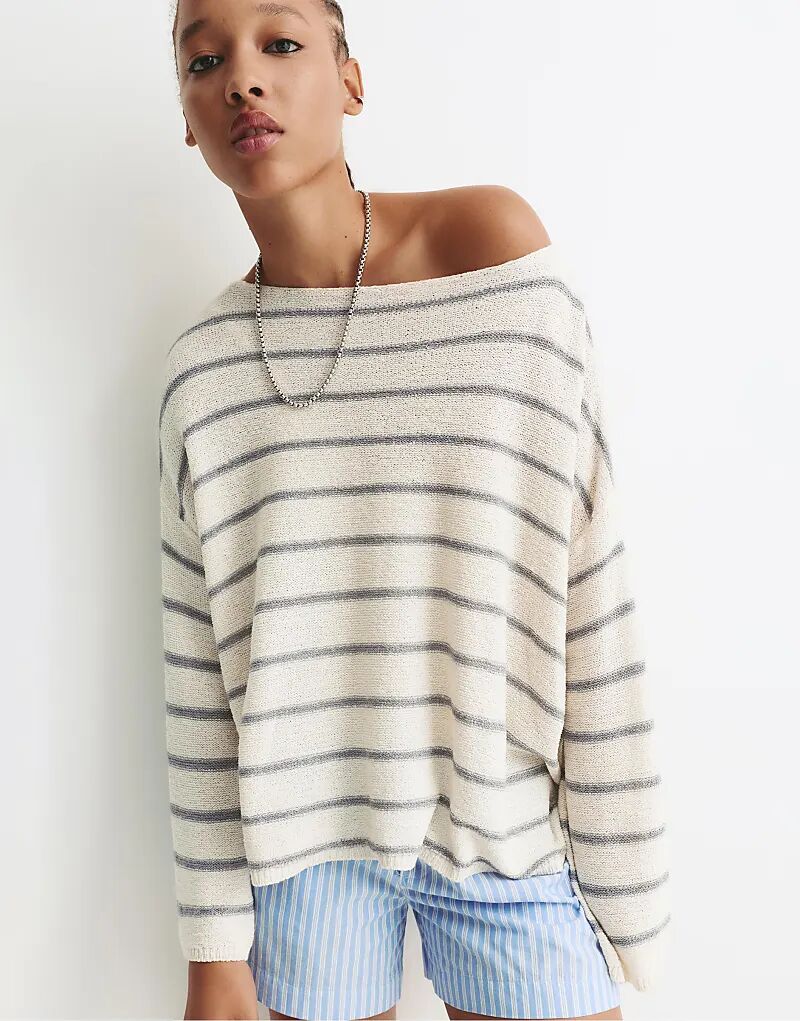 Полосатый свитер Pull&Bear серого цвета