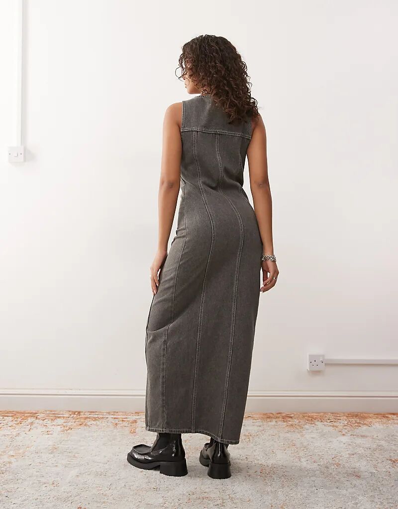 Платье макси Ragged Priest с панелями на пуговицах серого цвета