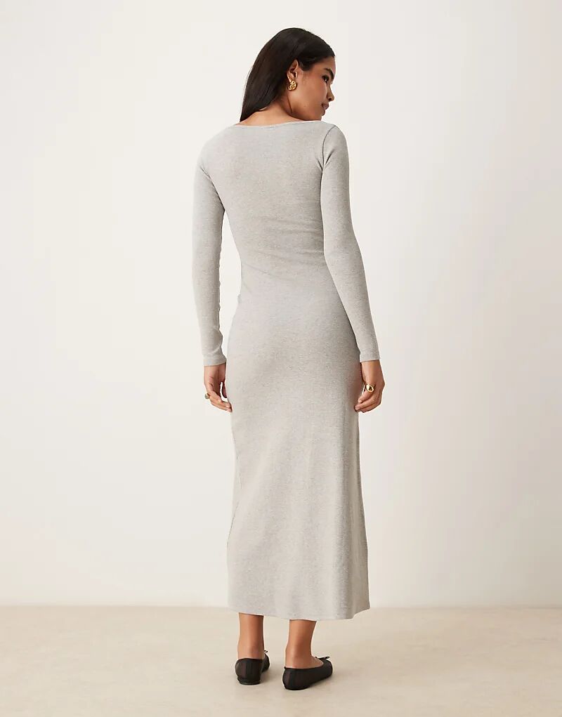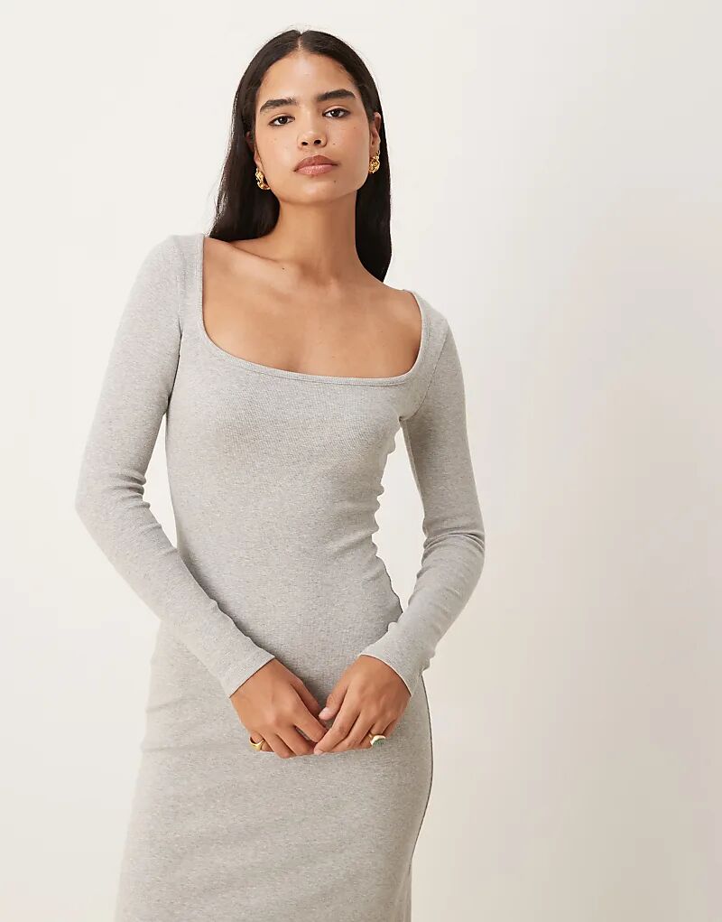 Платье макси с квадратным вырезом в рубчик ASOS DESIGN серого цвета 2 923₽