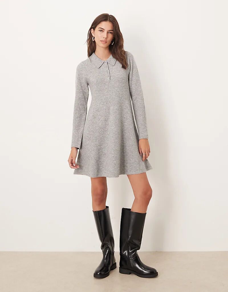 Трикотажное мини-платье JDY поло серого цвета 7 659₽