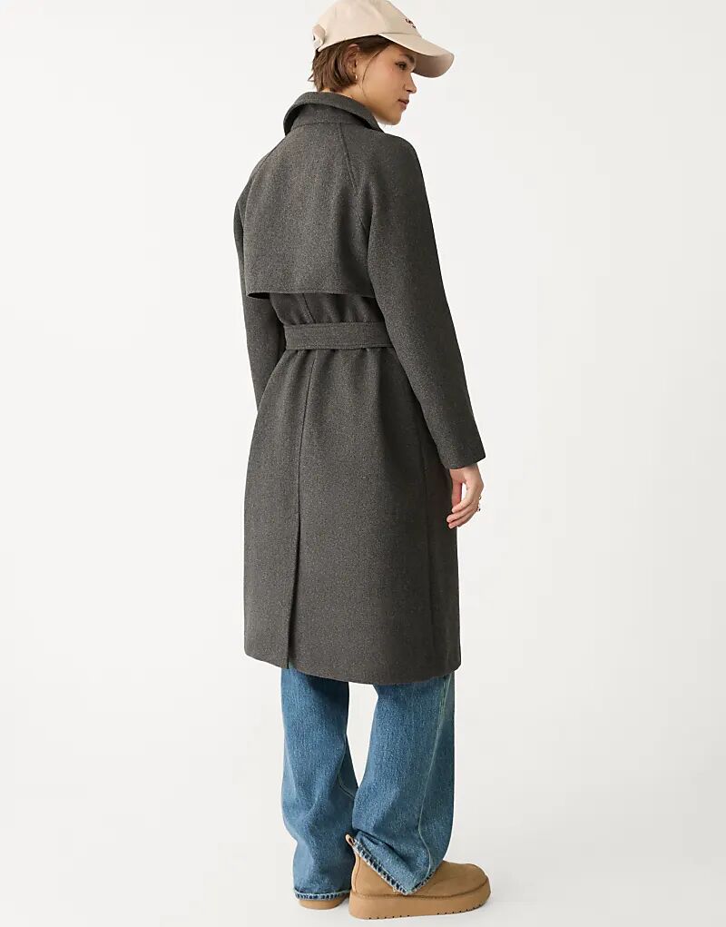 Мягкий на ощупь тренч Stradivarius серого цвета