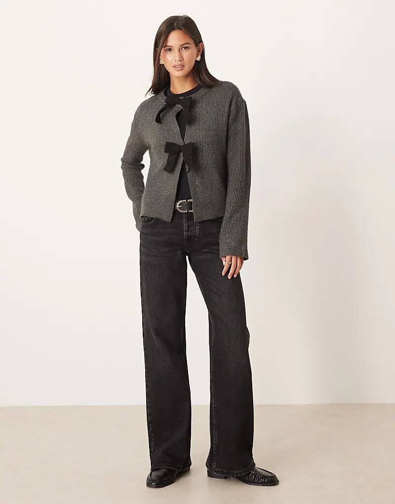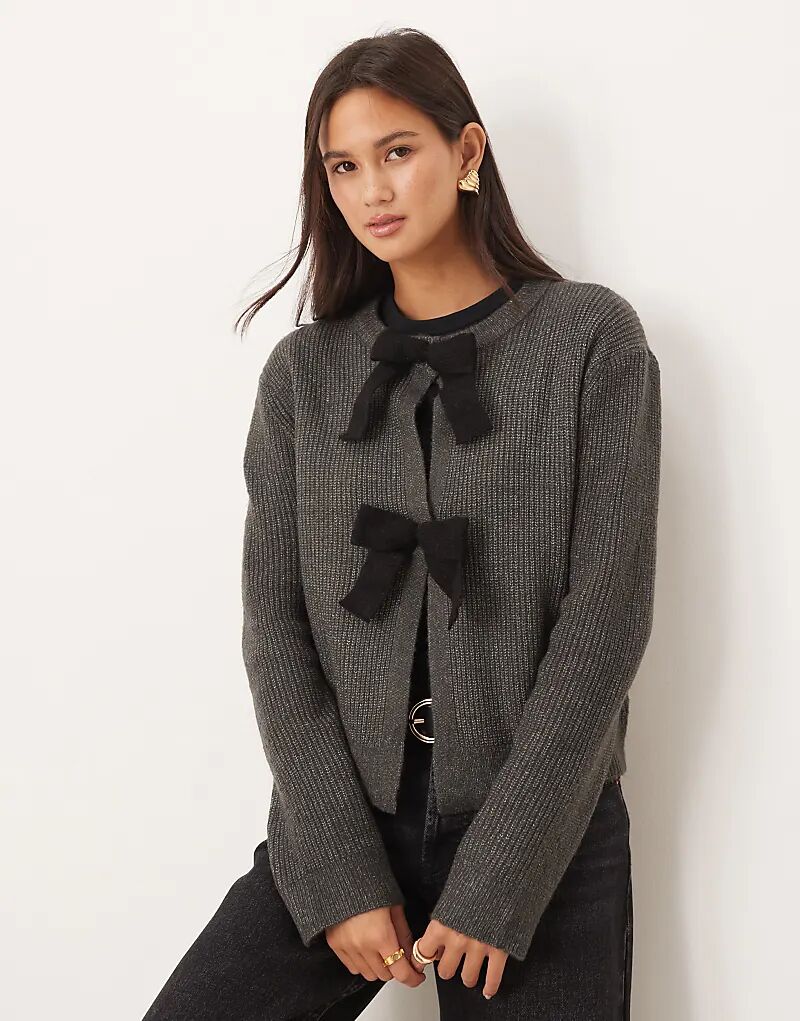 Кардиган Brave Soul с бархатным бантом в антрацитовом цвете