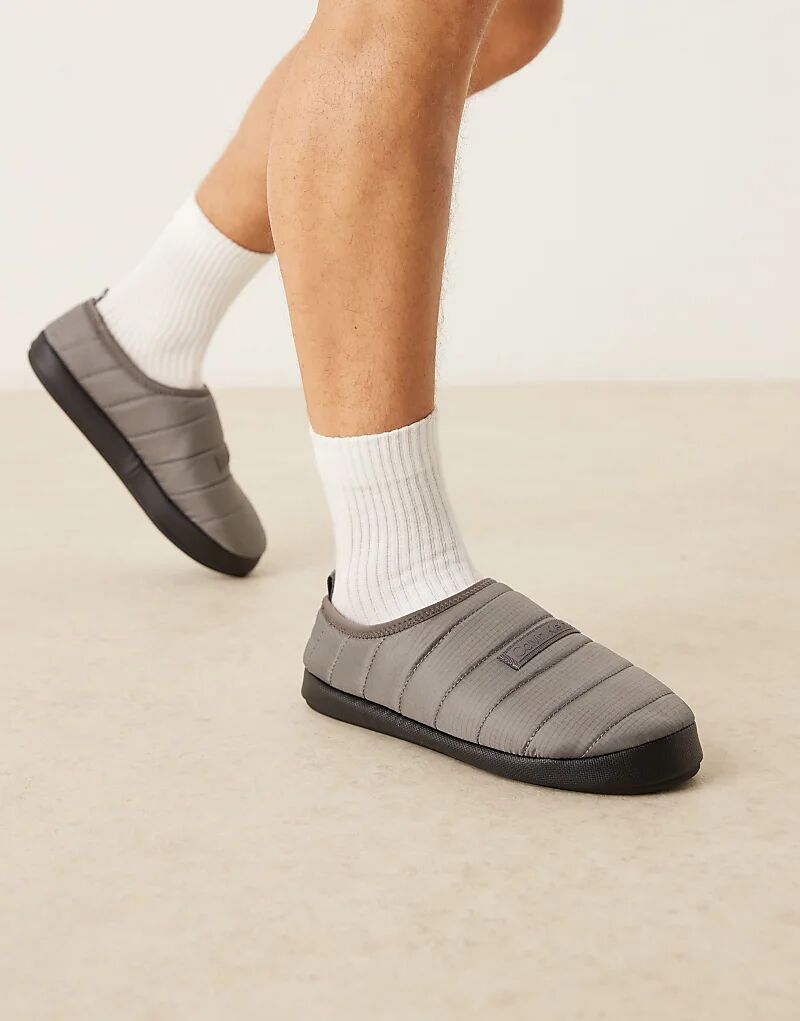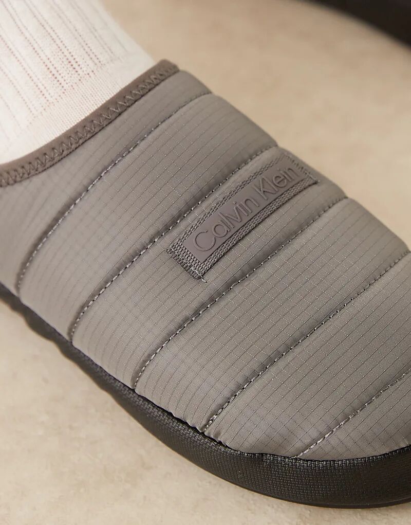 Тапочки-пуховики Calvin Klein из рипстопа серого цвета