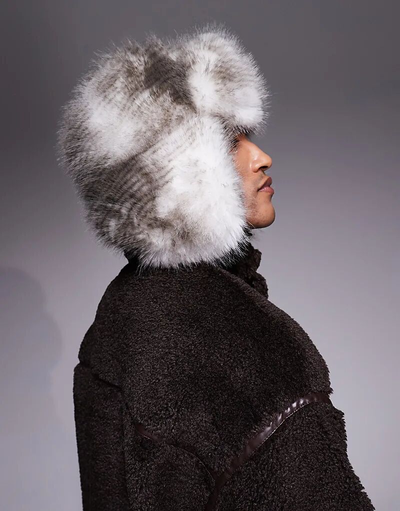 Меховая шапка-ушанка ASOS DESIGN серого цвета