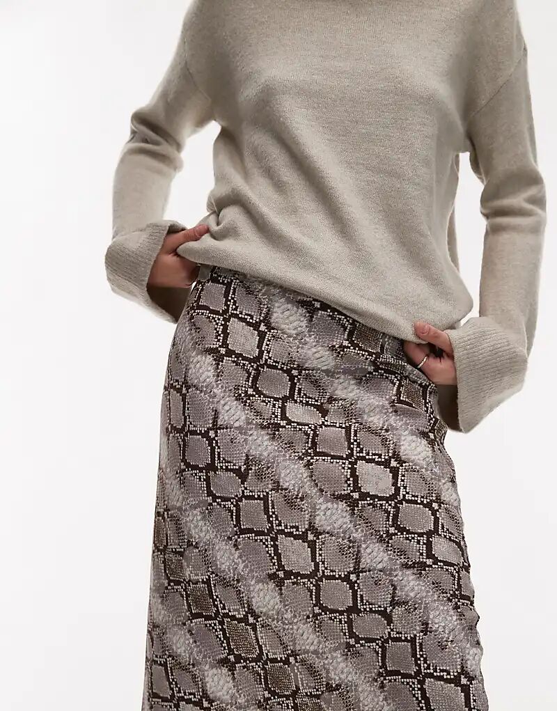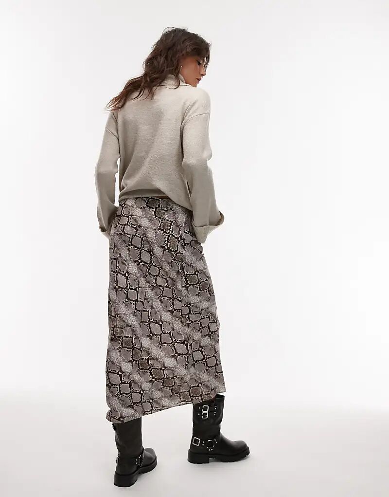 Юбка миди со змеиным принтом Mango серого цвета 3 520₽