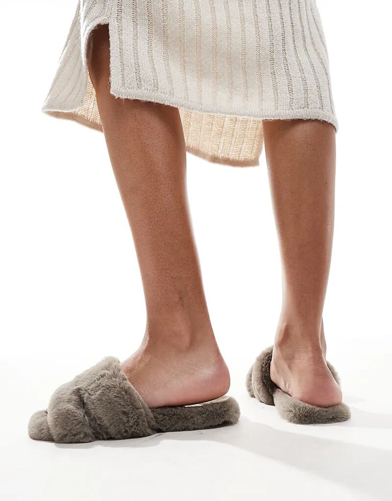 Пушистые тапочки Simmi London Polar серого цвета