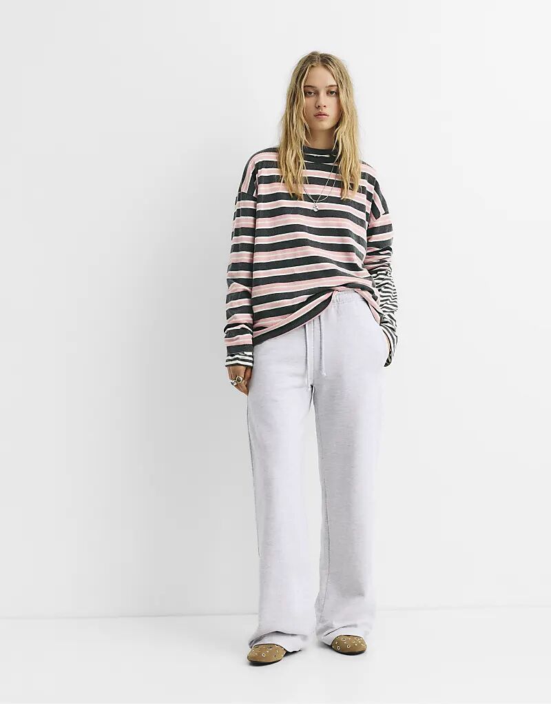 Спортивные брюки Pull&Bear Flowy серого меланжевого цвета
