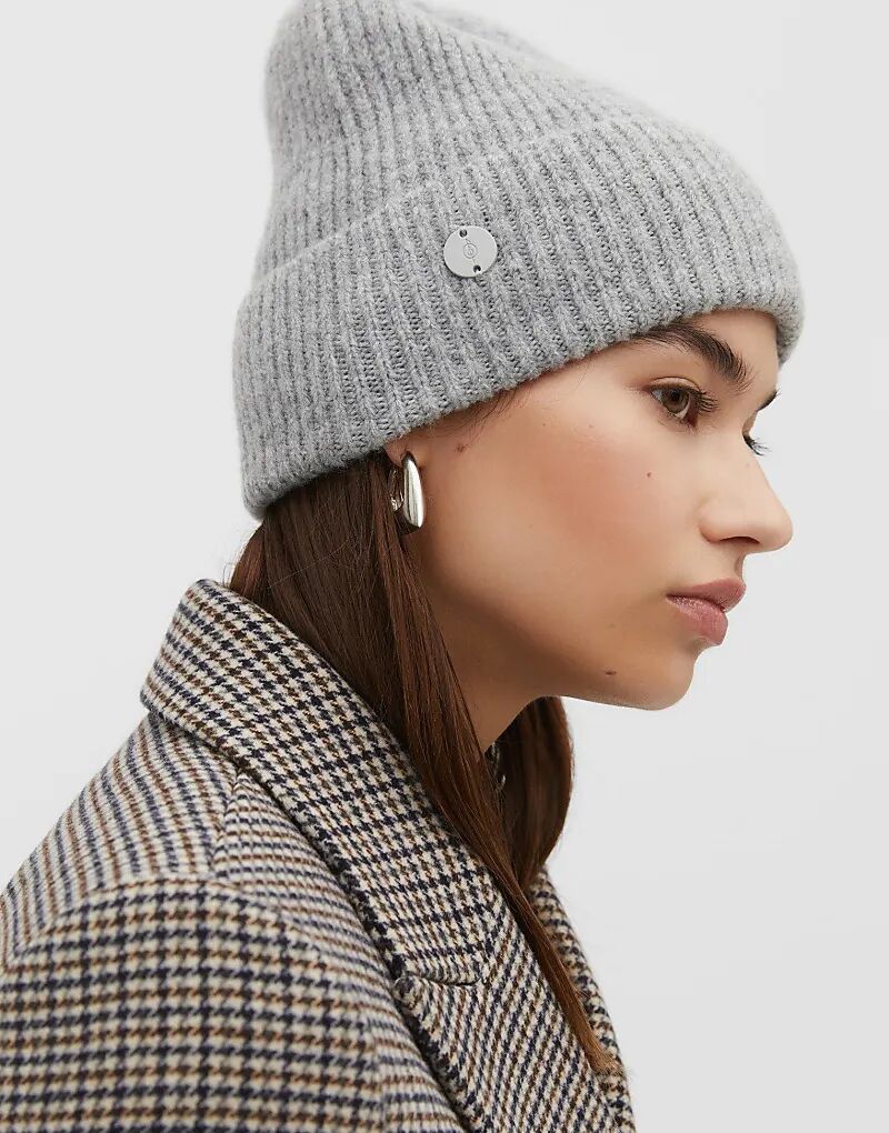 Ребристая кепка с пластиной в сером меланже