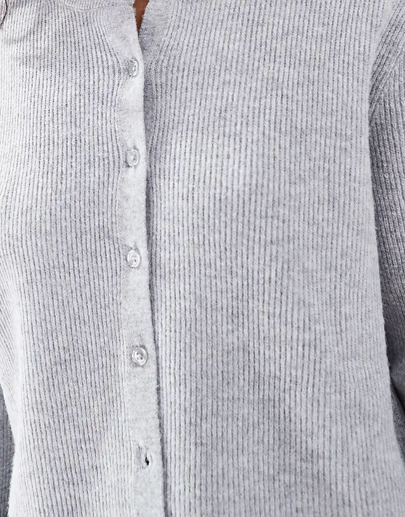 Кардиган Stradivarius в рубчик с пуговицами, серый меланж
