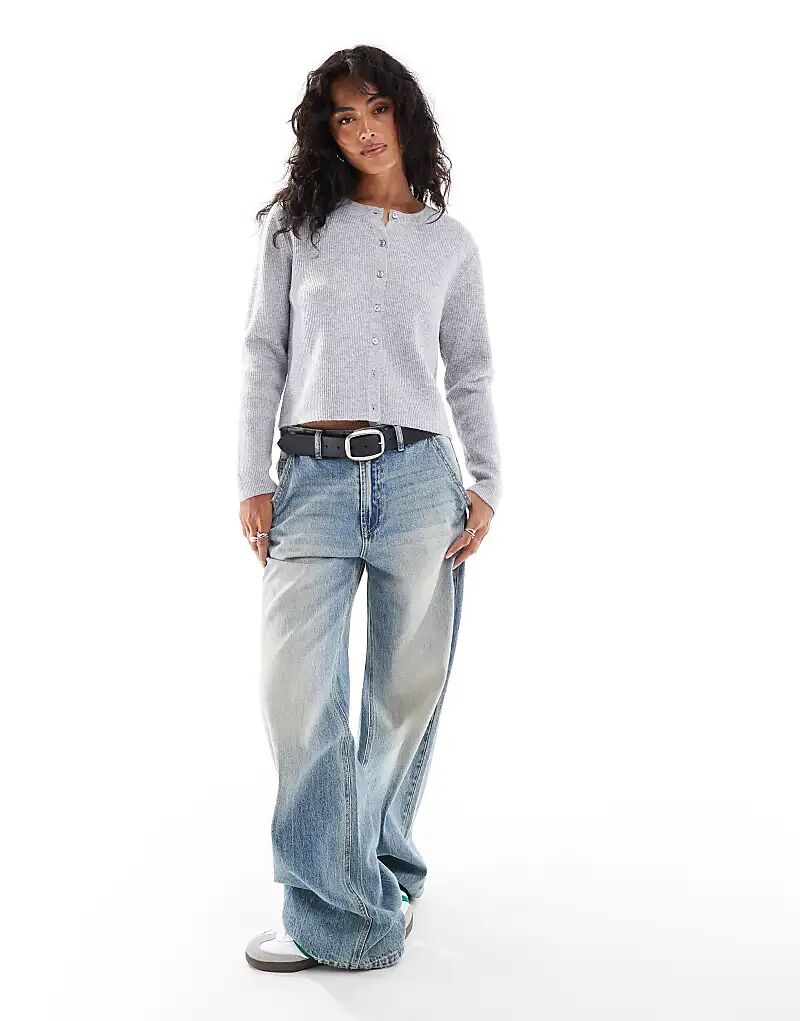 Кардиган Stradivarius в рубчик с пуговицами, серый меланж 3 437₽