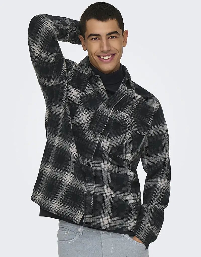 Клетчатая рубашка ONLY & SONS серого цвета 7 375₽