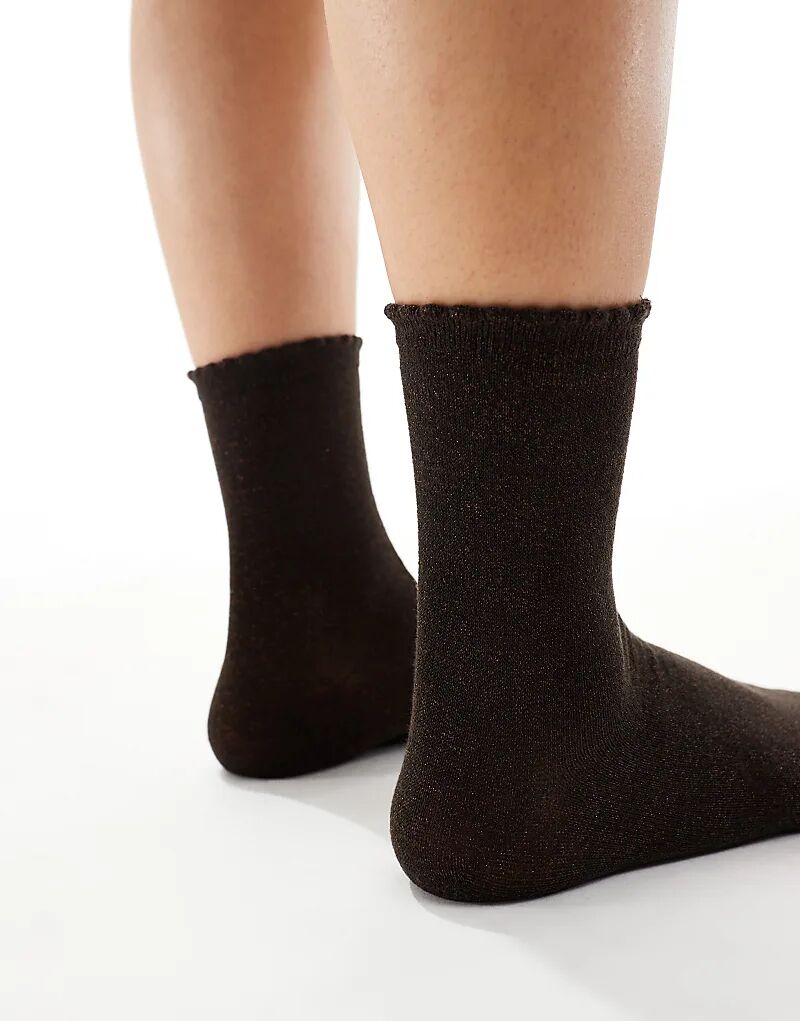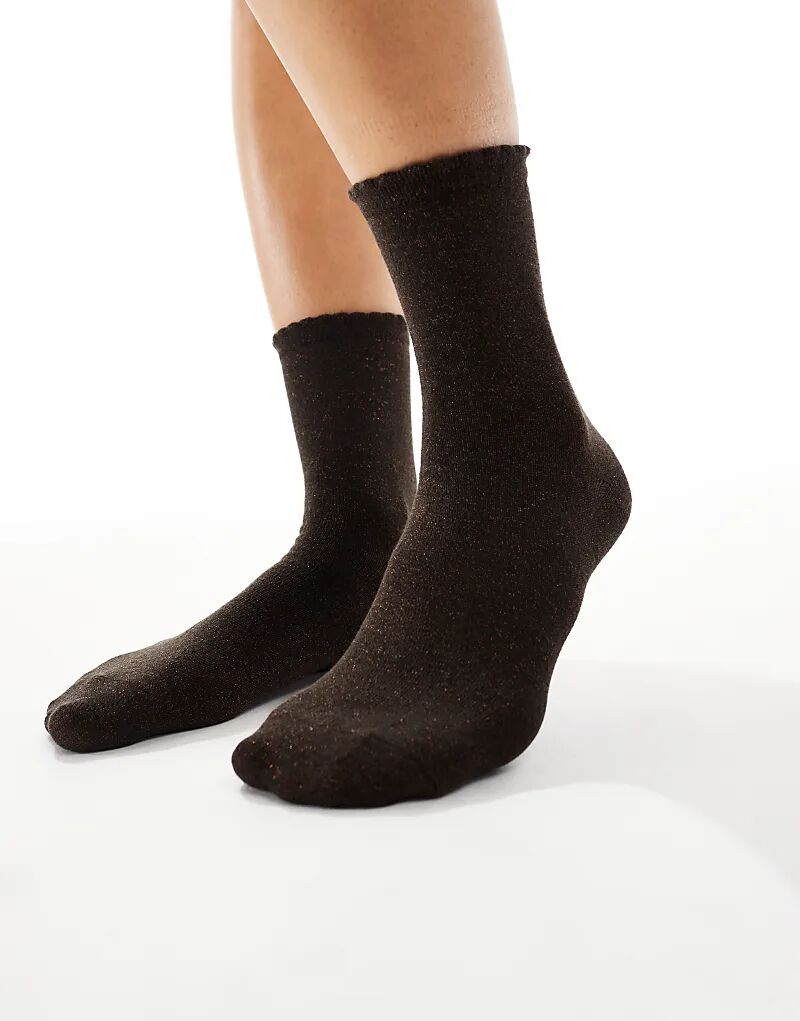 Блестящие носки Pieces шоколадно-коричневого цвета