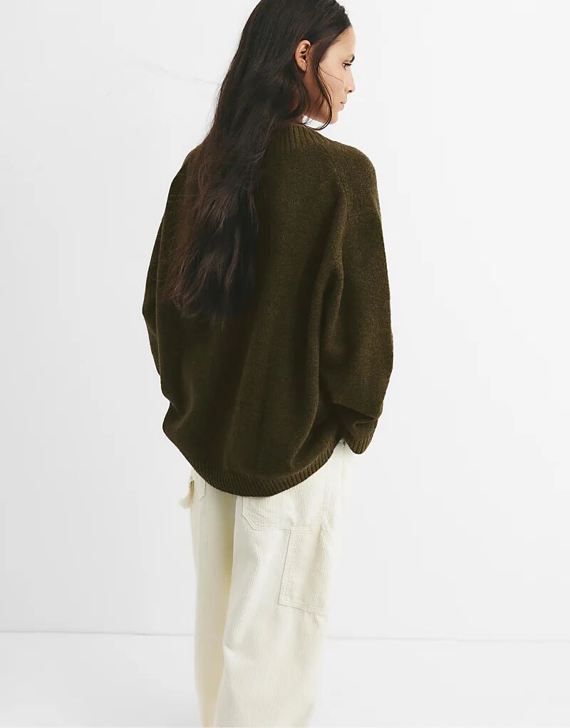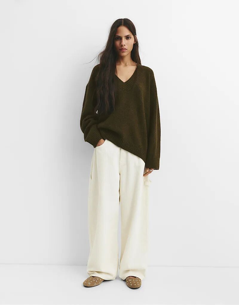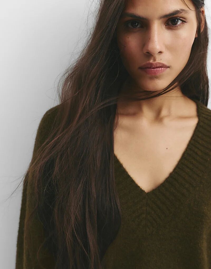 Вязаный джемпер Pull&Bear с V-образным вырезом в цвете «охотничье-зеленый»