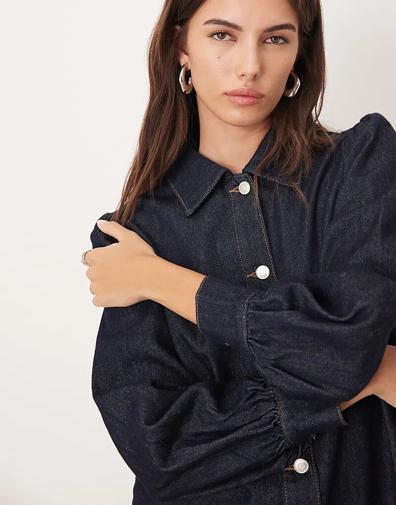 Джинсовое мини-платье ASOS DESIGN в стиле 70-х с рукавами-фонариками цвета индиго