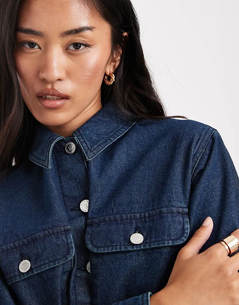 Платье-рубашка Miss Selfridge с большими пуговицами цвета индиго 5 625₽