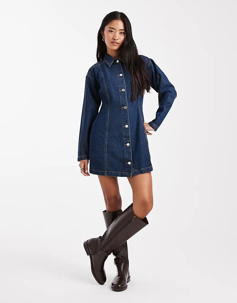 Платье-рубашка Miss Selfridge из денима в цвете индиго