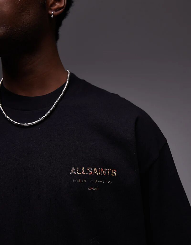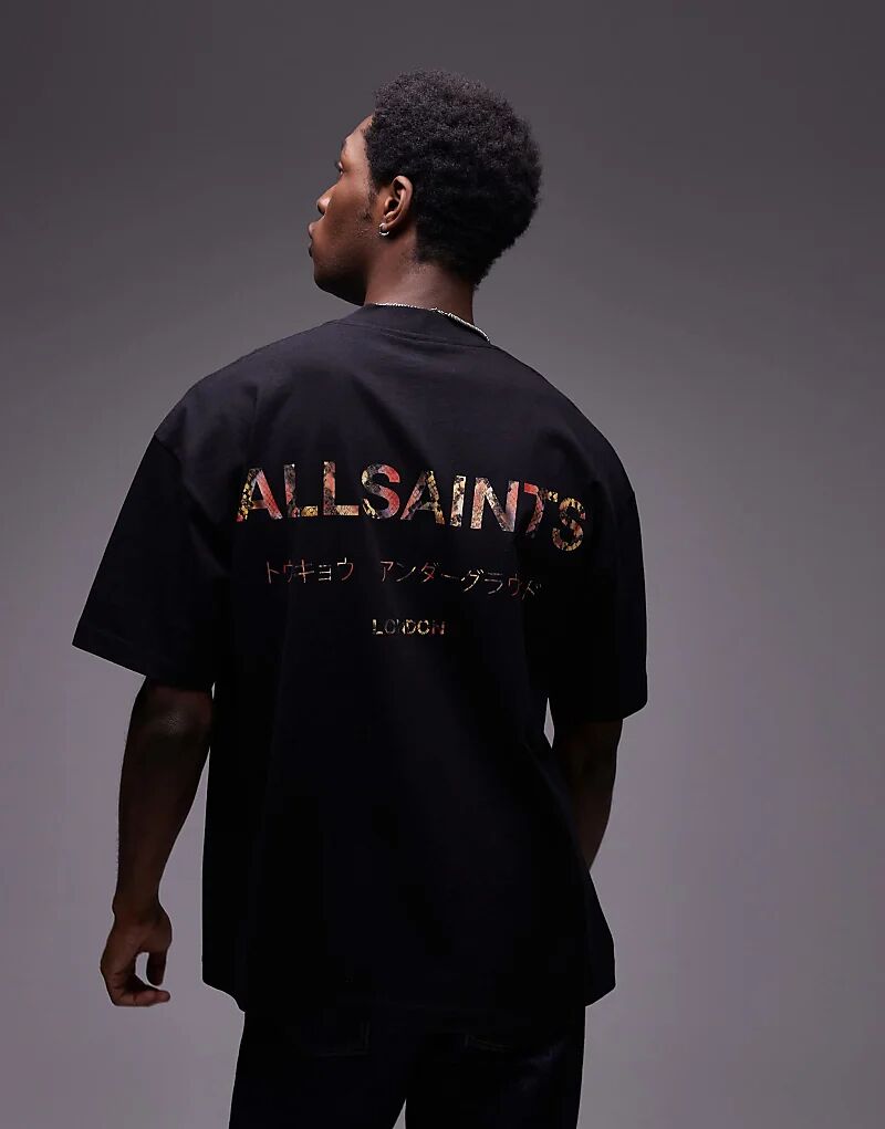 Футболка AllSaints Underground оверсайз с черным змеиным принтом