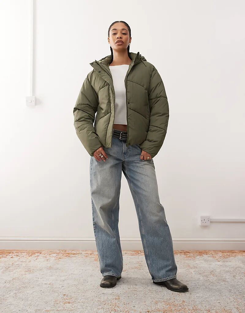 Куртка-пуховик Noisy May с капюшоном цвета хаки