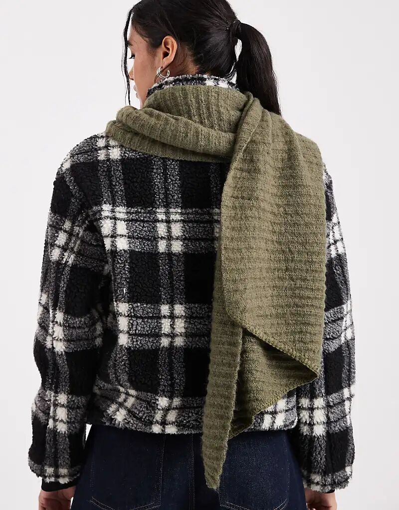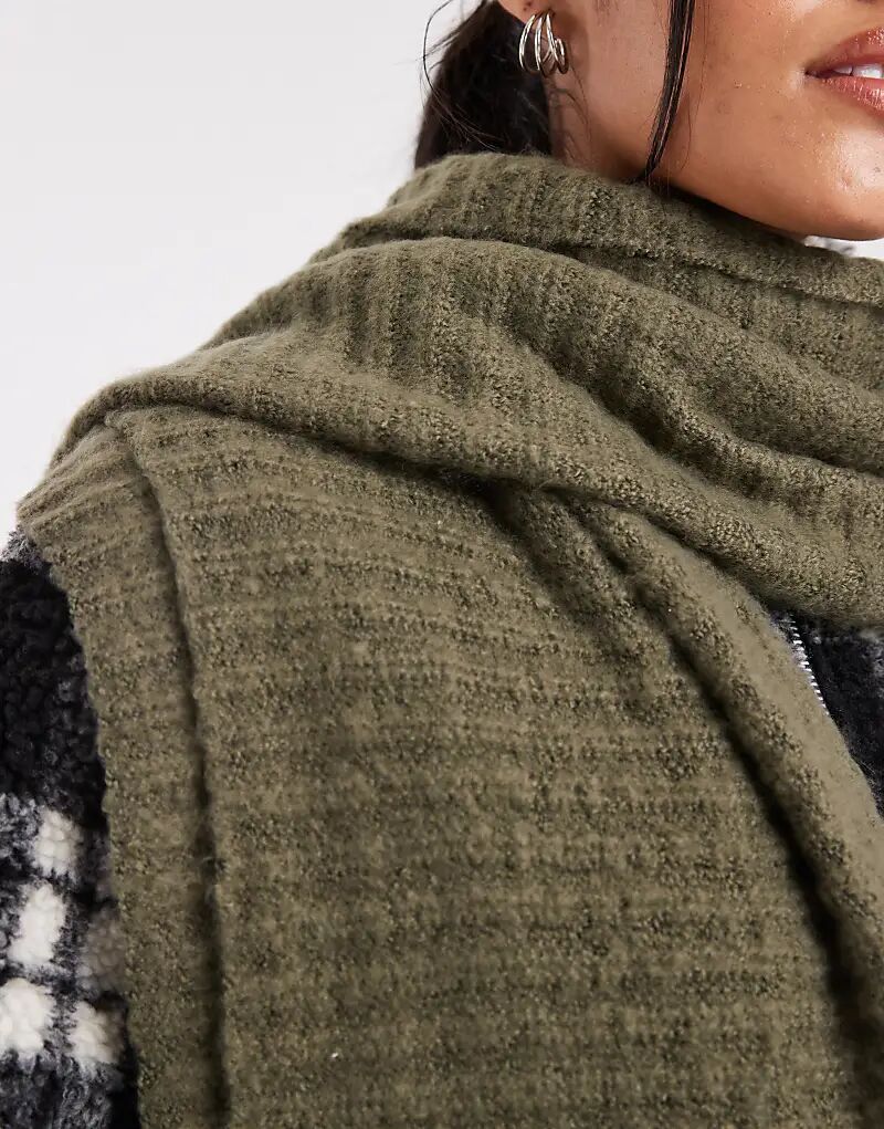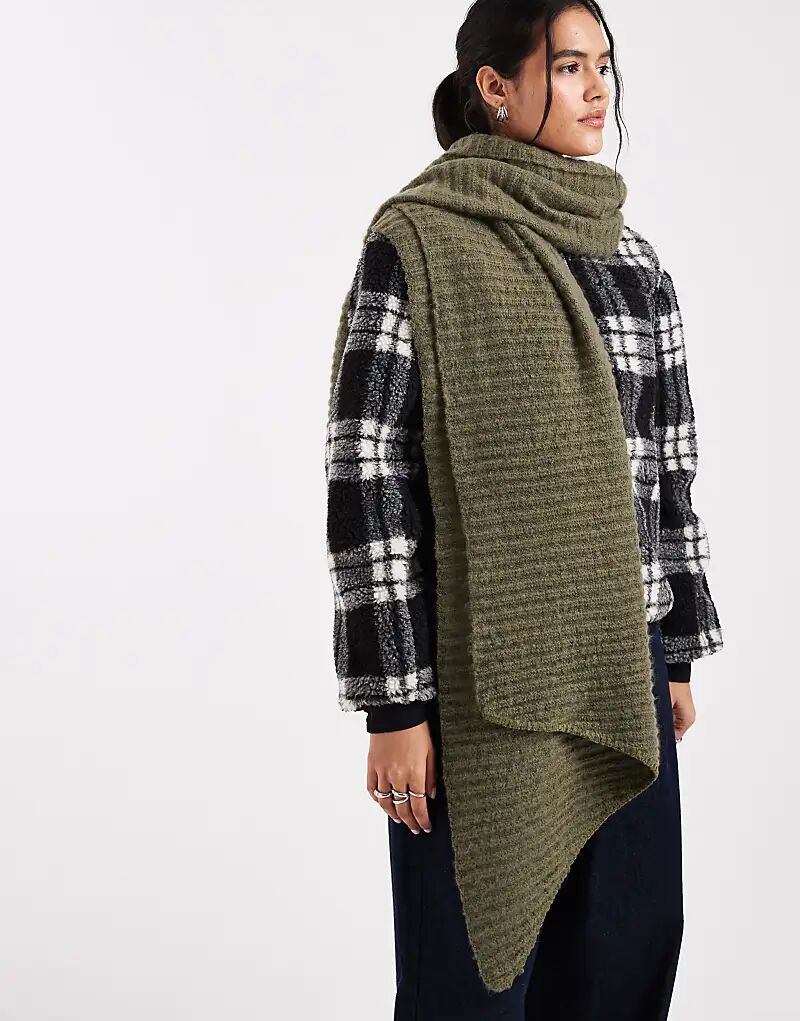 Супермягкий ребристый шарф Pieces темно-оливкового цвета