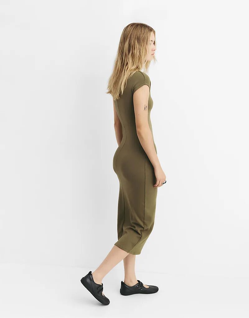 Платье миди Pull&Bear с высоким воротом цвета хаки