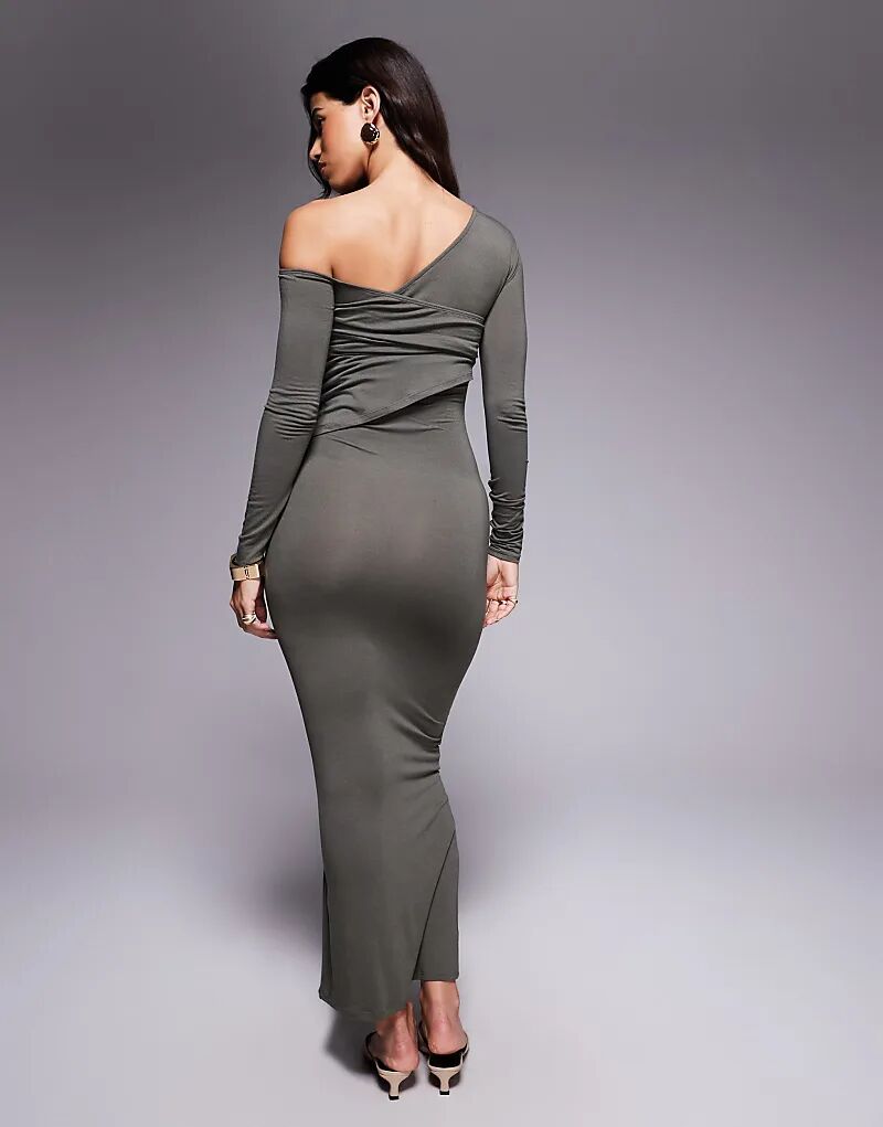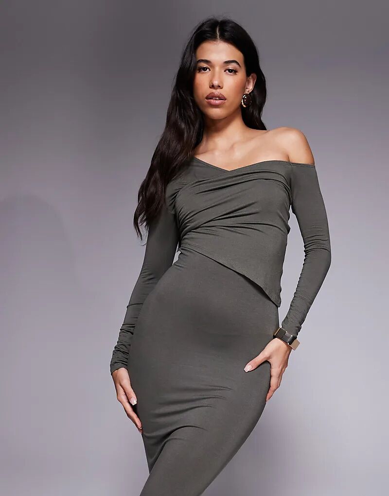 Двухслойное платье миди со спущенными плечами ASOS DESIGN цвета хаки