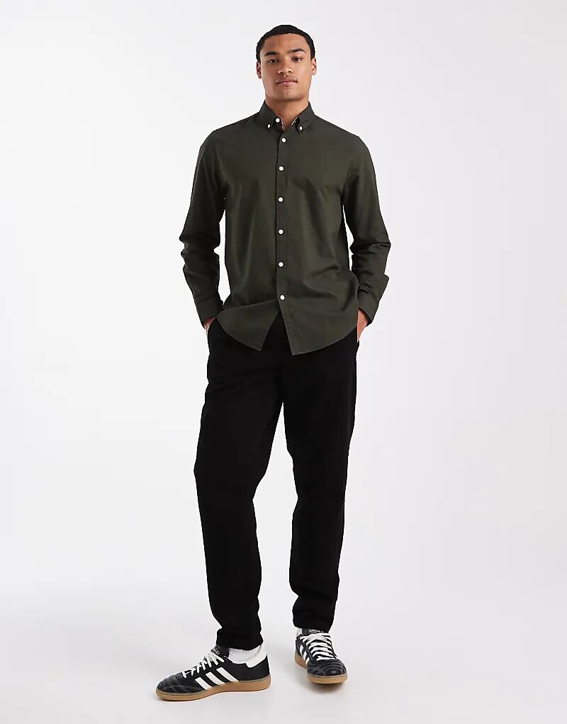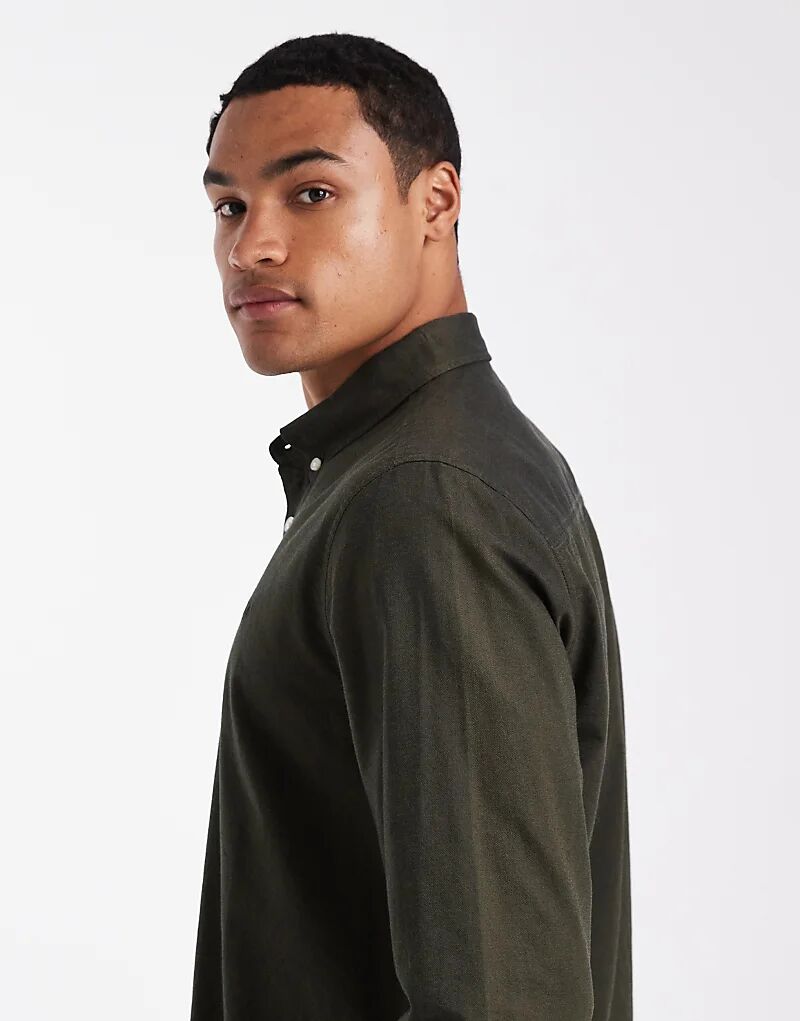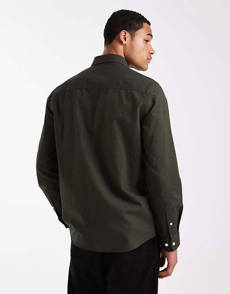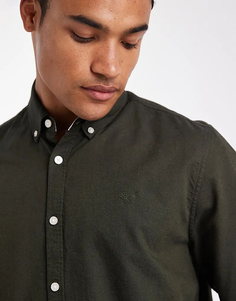 Потертая рубашка оксфорд с длинными рукавами цвета хаки